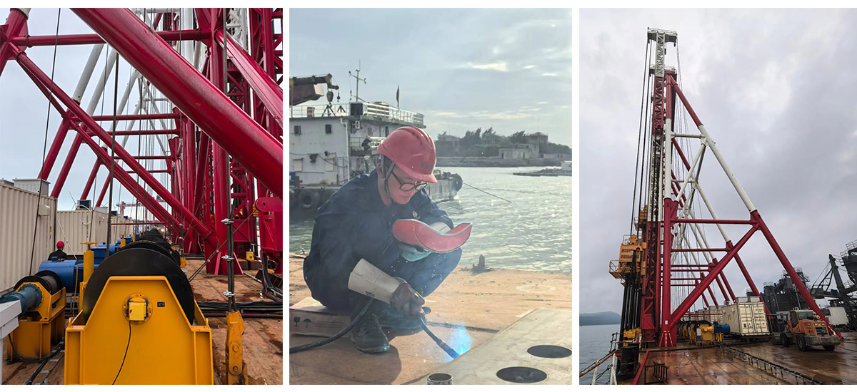 此次振中公司成功中標(biāo)參與智能打樁設(shè)備與系統(tǒng)建設(shè)也正源于其在樁工領(lǐng)域40年如一日的深耕和水泥攪拌樁領(lǐng)域的專業(yè)積累。在前期方案討論階段,公司高層高度重視,召集多名專家成立項目組,面對海工項目復(fù)雜地層施工難題,技術(shù)團(tuán)隊提出研發(fā)扭矩動態(tài)補(bǔ)償和變頻控制技術(shù),以突破動力與結(jié)構(gòu)設(shè)計瓶頸;計劃設(shè)計高度集成的全自動制漿系統(tǒng),實現(xiàn)智能配料、高速攪拌、漿量精準(zhǔn)輸送功能。整個團(tuán)隊緊密協(xié)作,形成強(qiáng)大合力,確保了項目按照預(yù)定計劃穩(wěn)步推進(jìn)。
