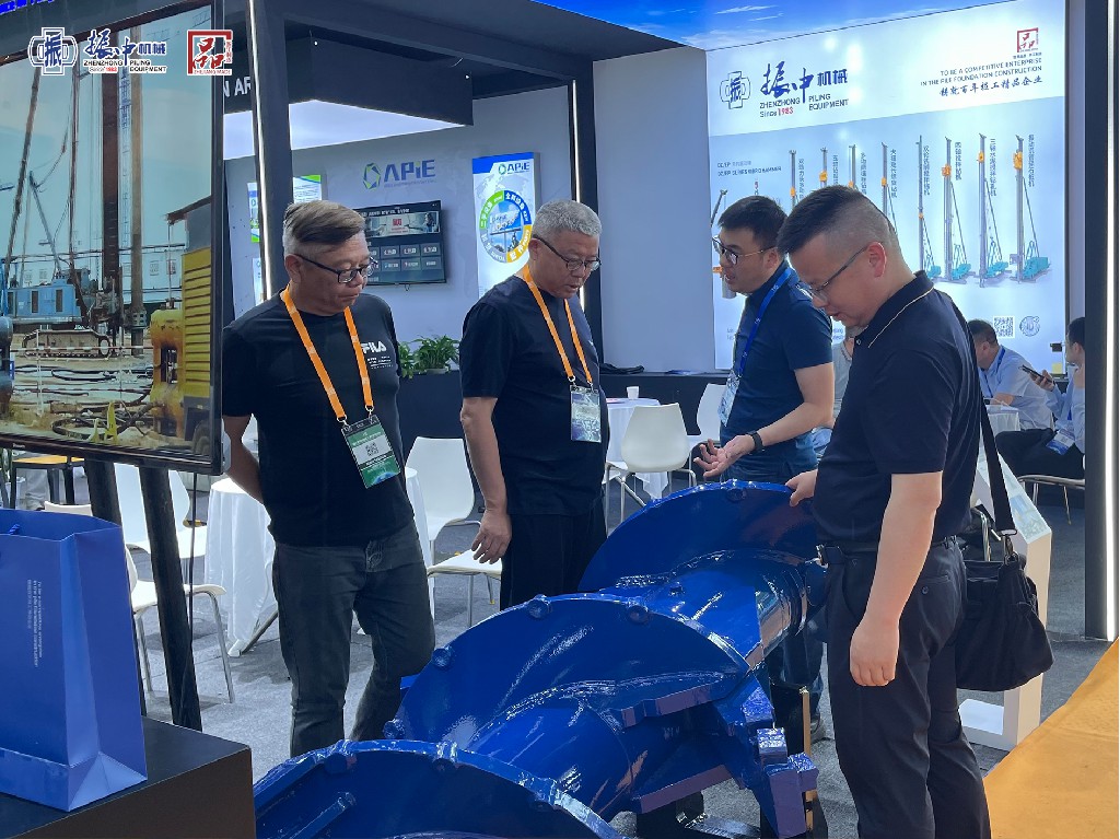 展會(huì)盛大,展商眾多,觀眾熱情。走進(jìn)W4展館,來到41B展位,映入眼簾的是“振中機(jī)械”四個(gè)大字,現(xiàn)場咨詢?nèi)藛T絡(luò)繹不絕,工作人員一一接待,基于完美的服務(wù)態(tài)度,完備的知識(shí)儲(chǔ)備,完善的產(chǎn)品類型為客戶詳細(xì)介紹,場面火熱。此次展會(huì)咨詢次數(shù)榮登榜首的是“多軸水泥攪拌鉆孔機(jī)”,是一款有自主知識(shí)產(chǎn)權(quán)的新一代大型步履產(chǎn)品。能適用于多種樁基礎(chǔ)施工,尤其能滿足深基礎(chǔ)施工中廣泛采用的 SMW 工法地下連續(xù)墻施工工藝。是高速公路、橋梁港口、碼頭、地鐵車站和高層建筑中地下樁基礎(chǔ)施工的理想、高效設(shè)備。