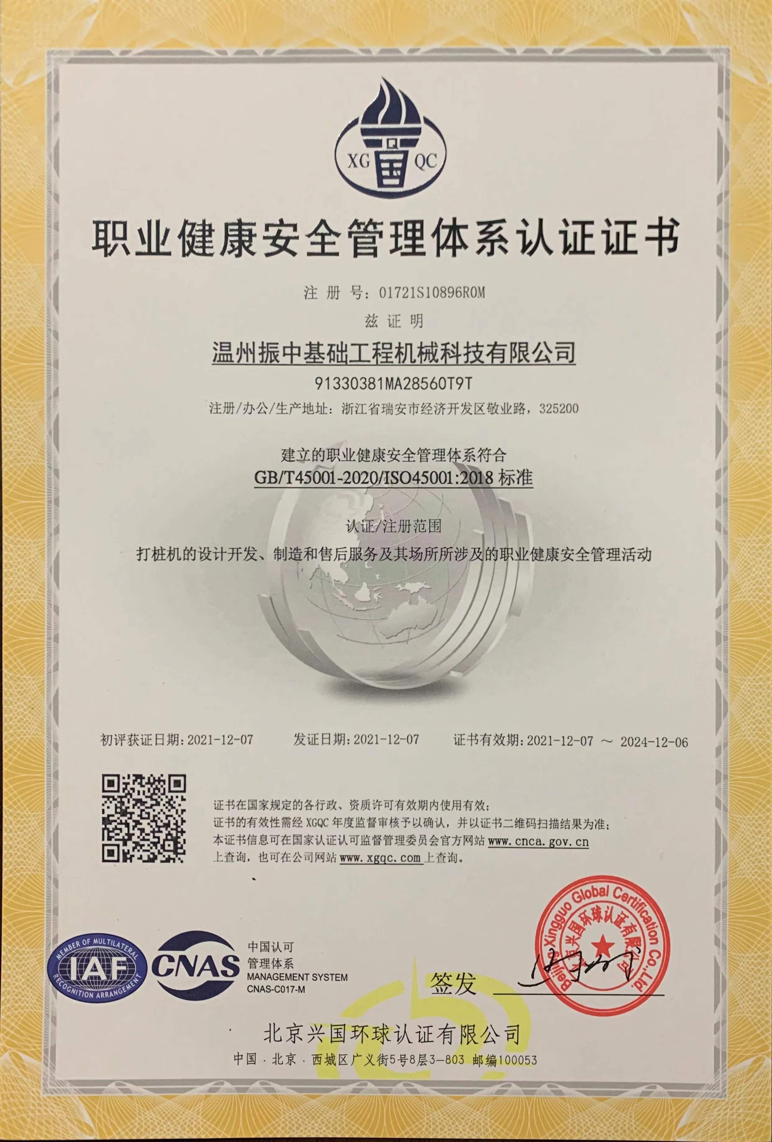 ISO45001職業(yè)健康管理體系認(rèn)證